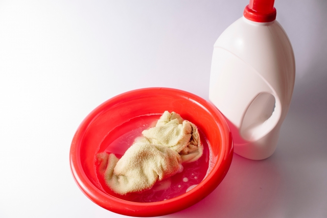 液体やジェルの糊であれば、洗面器に水と糊を入れて、作業着を浸してつけ置きします。洗濯機を使う場合は、すすぎ洗いの後に洗濯糊を入れます。
