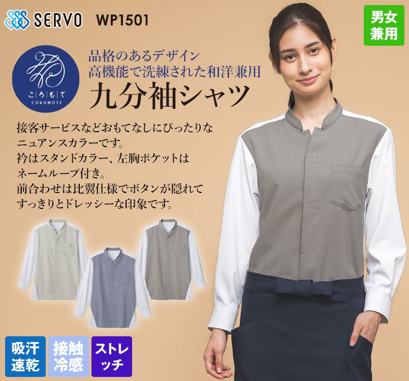 SerVo(サーヴォ) WP1501 シャツ/九分袖/スタンドカラー(男女兼用)